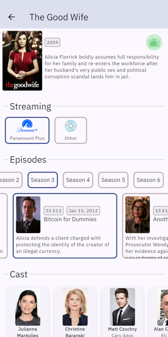 Search for TV shows to find out where they're streaming, view episode details, and explore the cast.